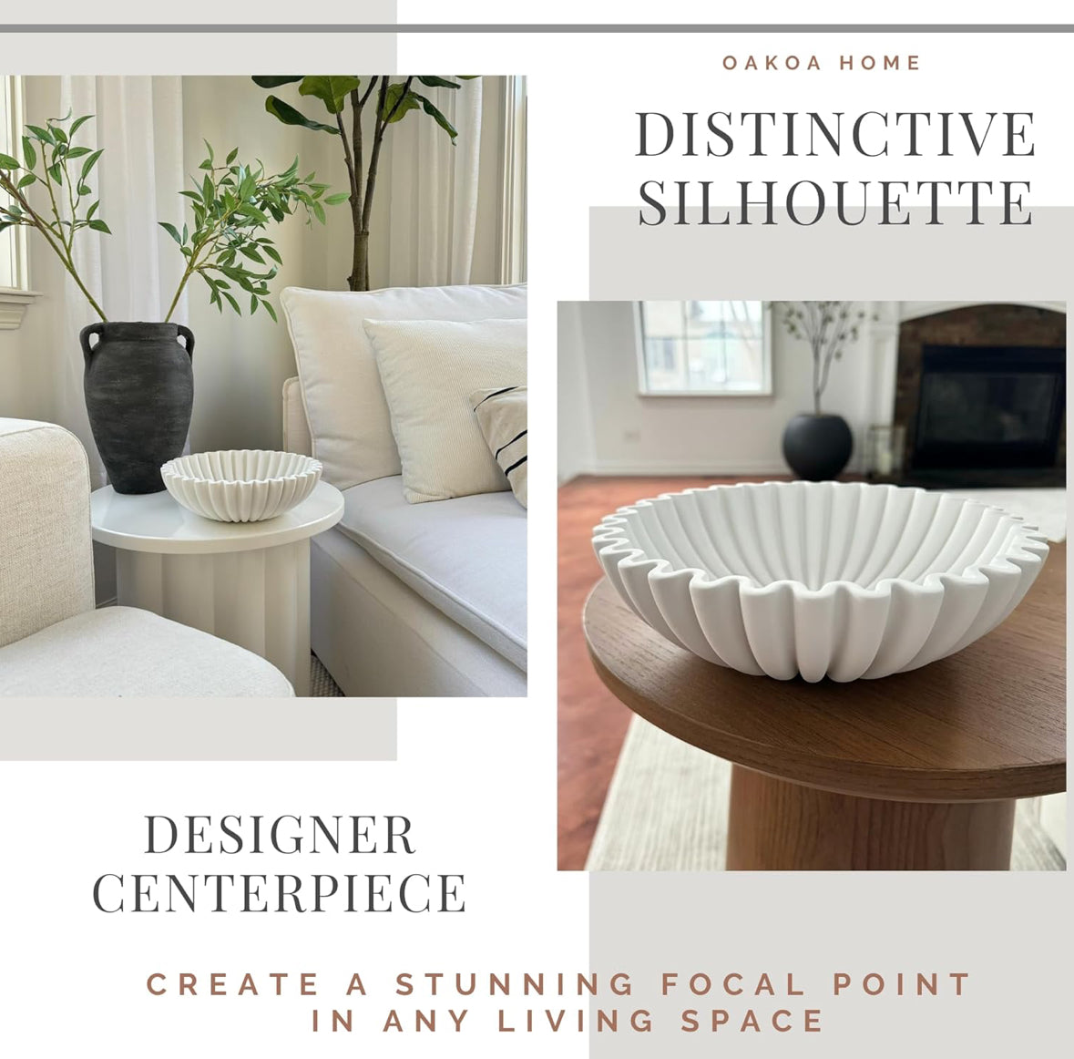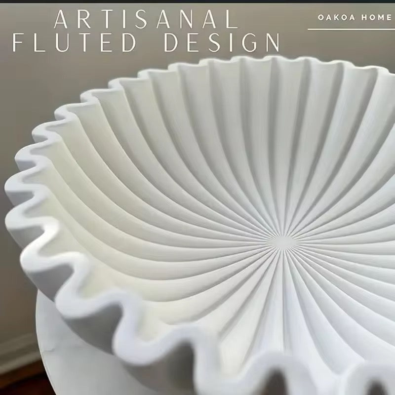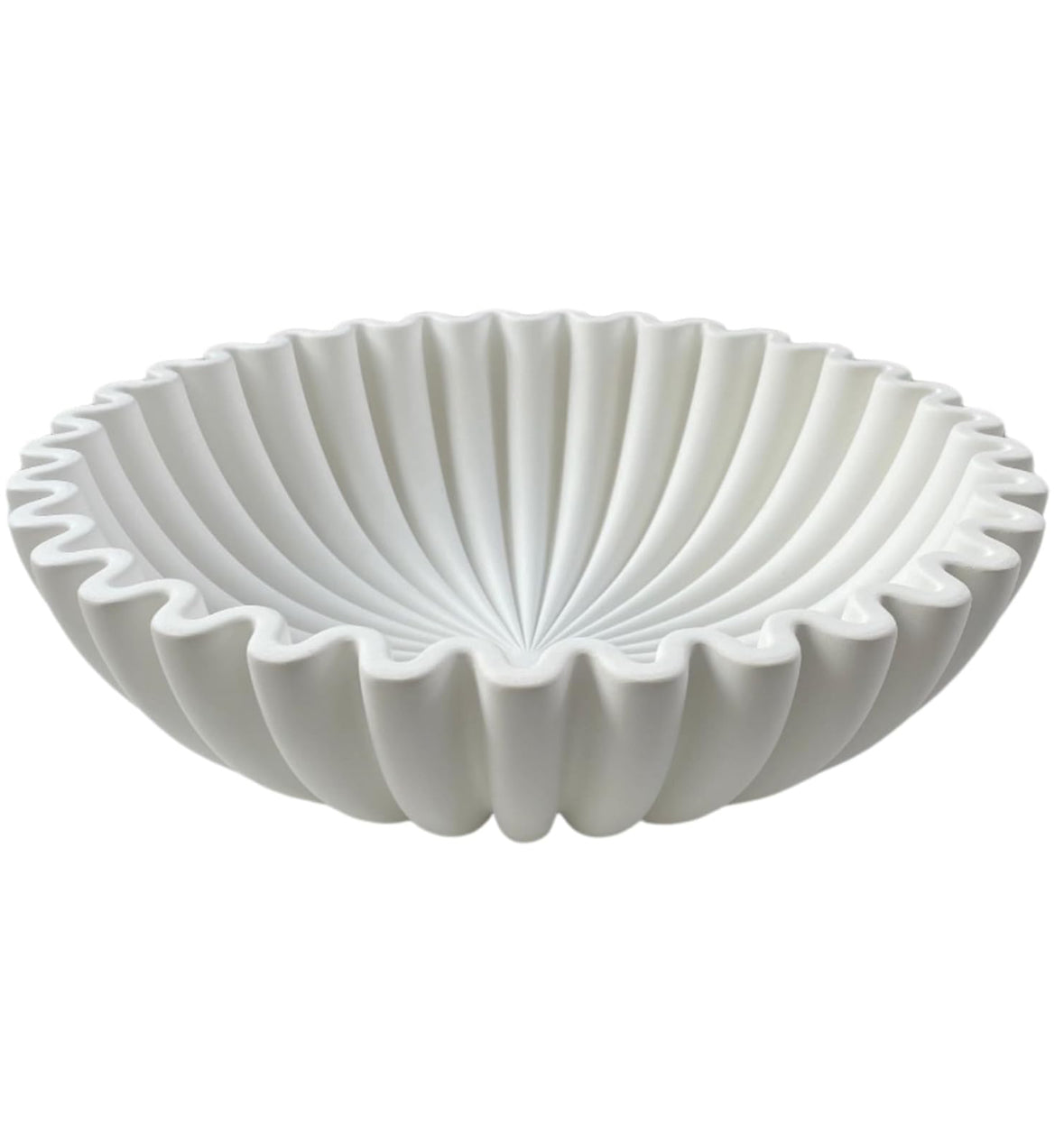 Avec ses lignes plissées et sa forme organique, ce bol en céramique blanche devient instantanément une pièce maîtresse de votre déco. Sa texture ondulée capte la lumière et crée un jeu d’ombres subtil, parfait pour habiller une console, une table basse ou une étagère. Élégant, épuré et résolument moderne, il s’intègre dans les intérieurs minimalistes ou contemporains.