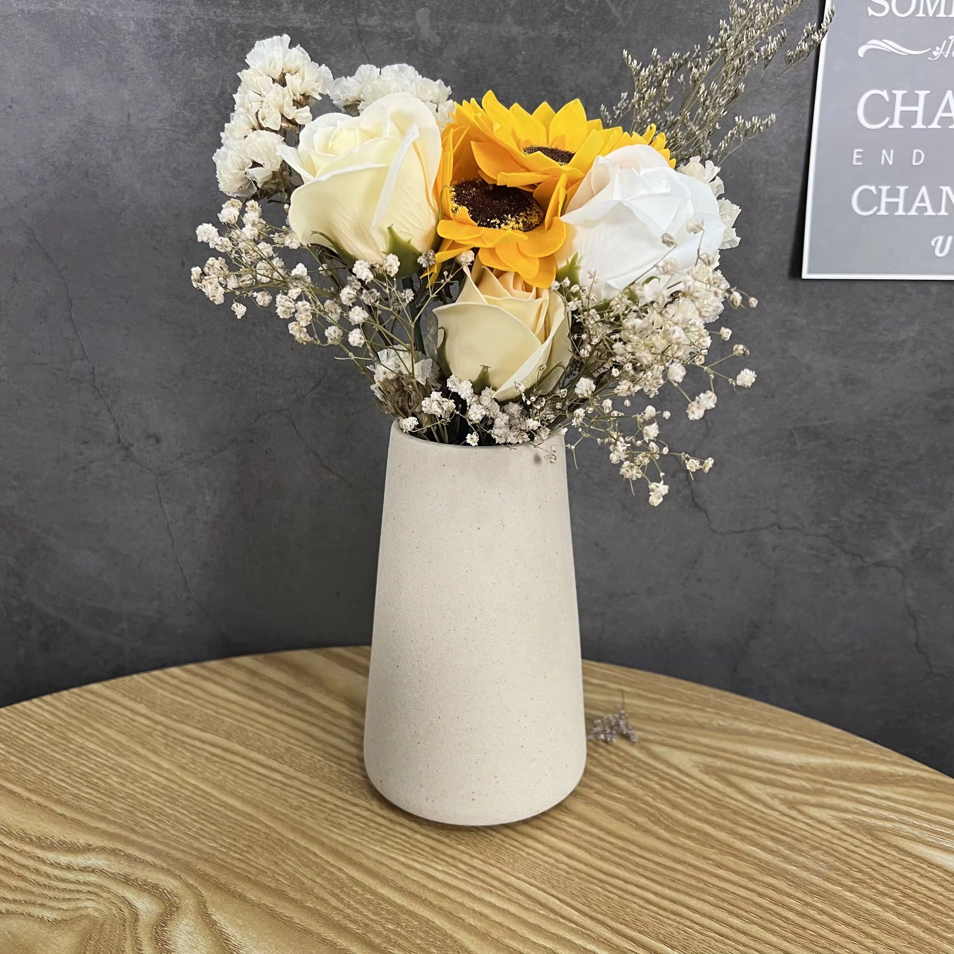 Un vase simple et épuré, parfait pour accueillir quelques fleurs séchées ou artificielles. Sa forme conique minimaliste et ses couleurs douces s’intègrent à tous les styles d’intérieur : scandinave, wabi-sabi, contemporain ou bohème.