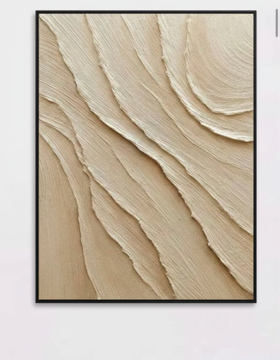 Un tableau en relief aux nuances sableuses, inspiré des formes douces de la nature. Chaque couche de matière évoque une ondulation, une dune, un mouvement figé dans le temps. Une pièce intemporelle, idéale pour une déco naturelle, minimaliste ou organique.