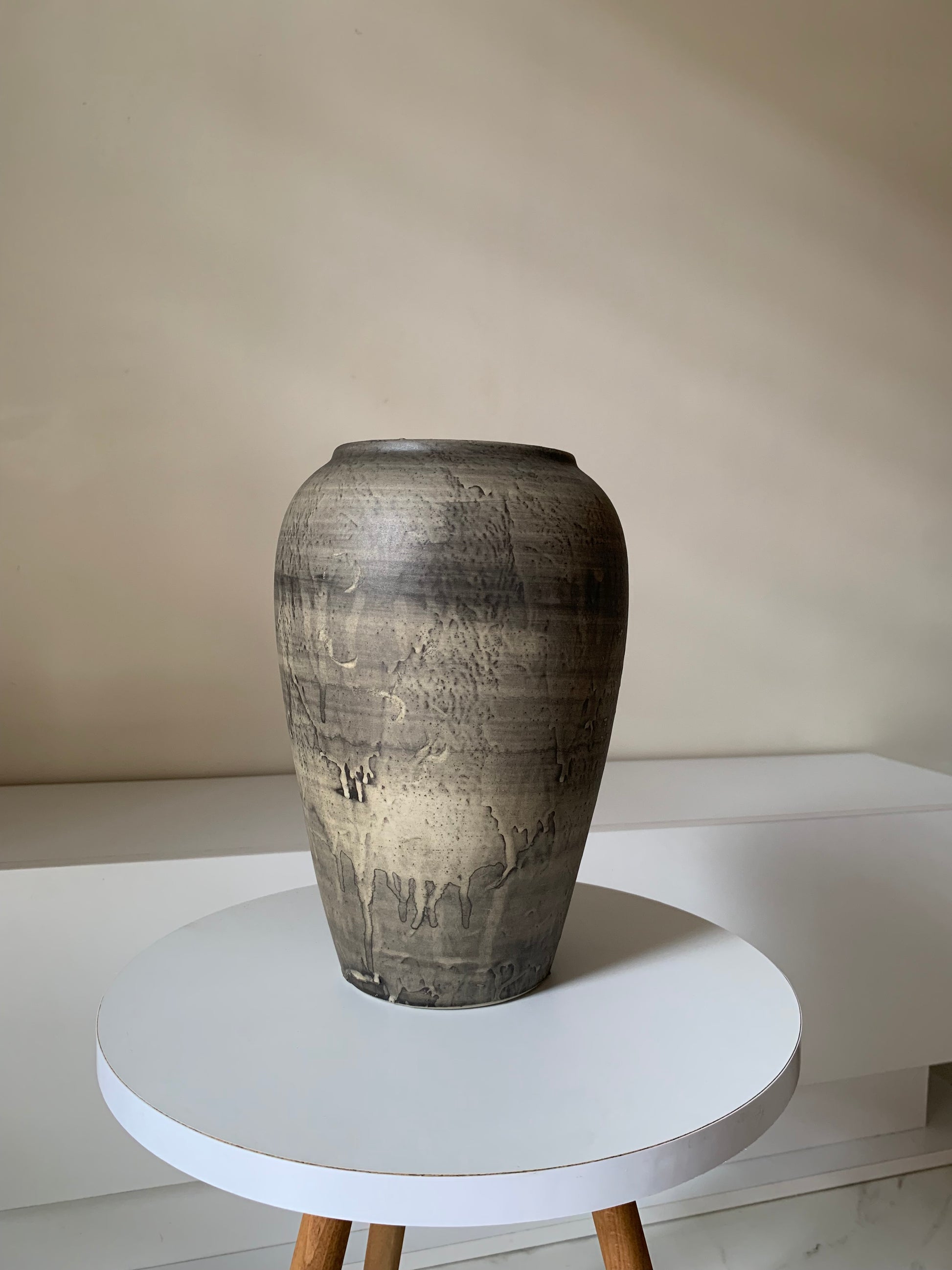 Inspiré des formes organiques et du style wabi-sabi, ce vase apporte un charme artisanal et naturel à votre intérieur. Sa silhouette sobre et sa couleur minérale en font une pièce forte, idéale seule ou en accumulation.